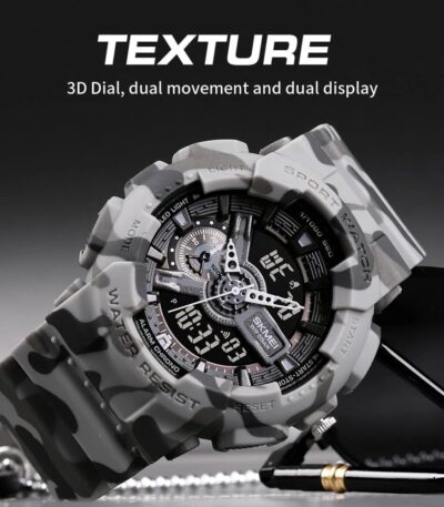 SKMEI 1688 Fashion Black Man Digital Watch Activity Rubber Strap Double Display STOPWATCH Long Battery Life Sports Reloj Watch